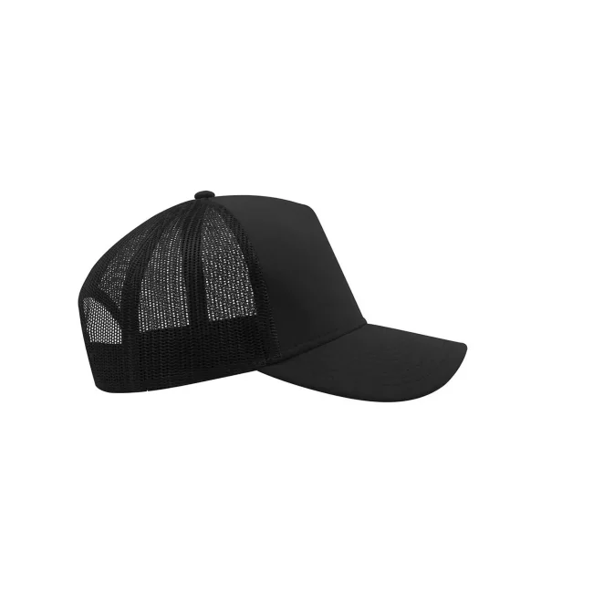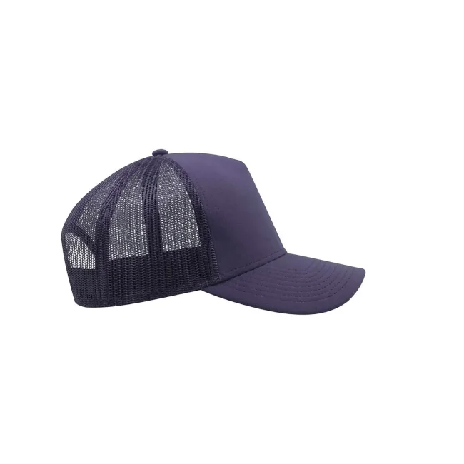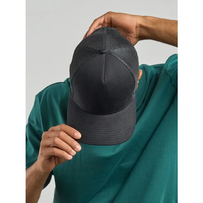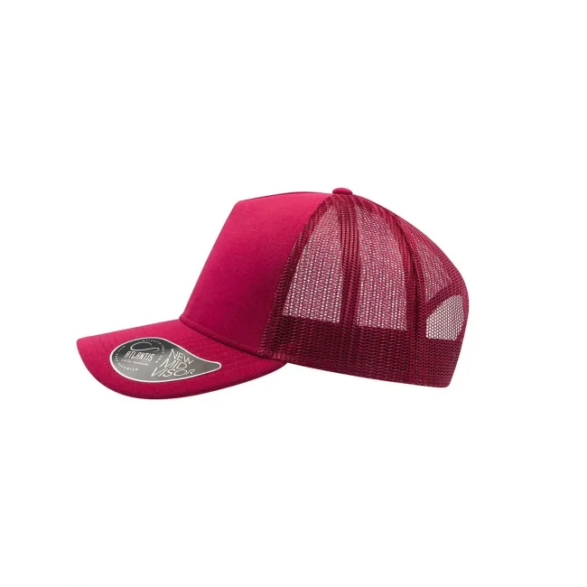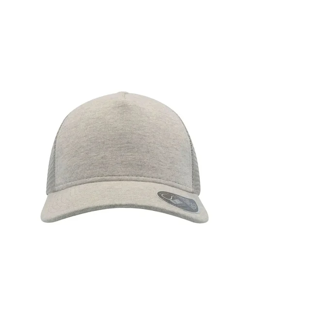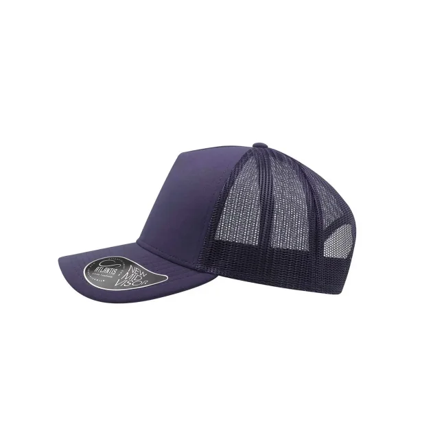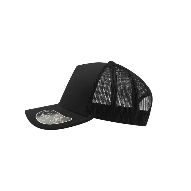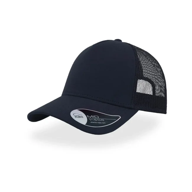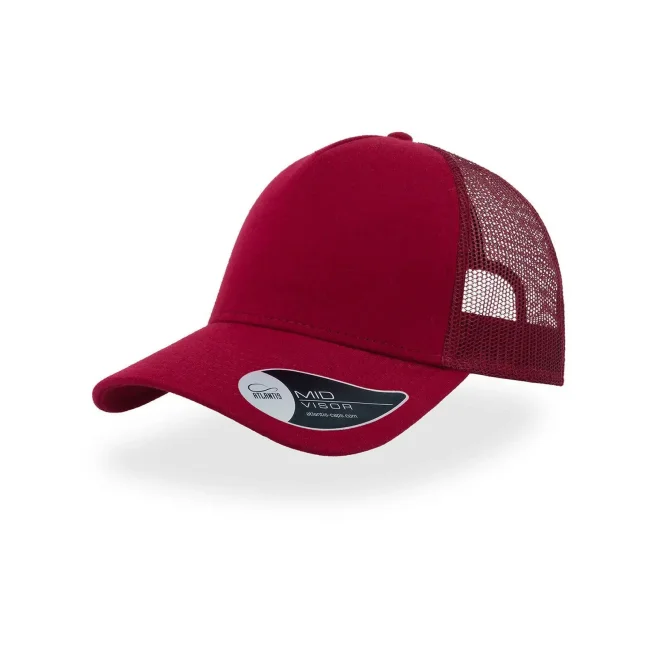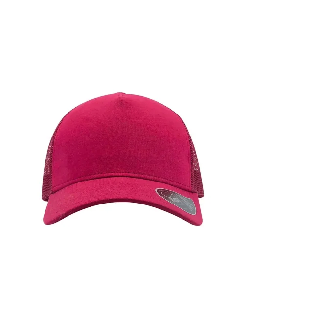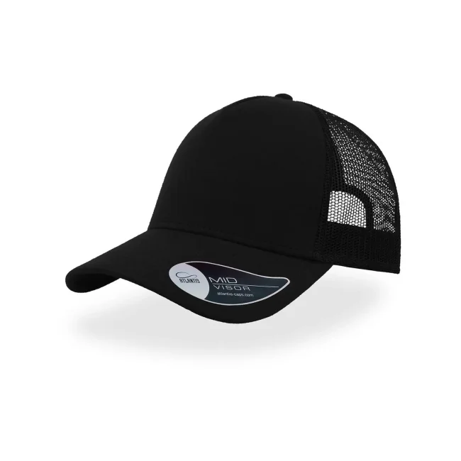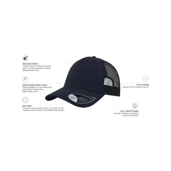 50% cotone, 50% poliestere. Cappellino a 5 pannelli con pannello frontale rinforzato, visiera pre-curvata, adesivo sulla visiera, parasudore in cotone, chiusura in pvc, etichetta removibile,taglia unica.