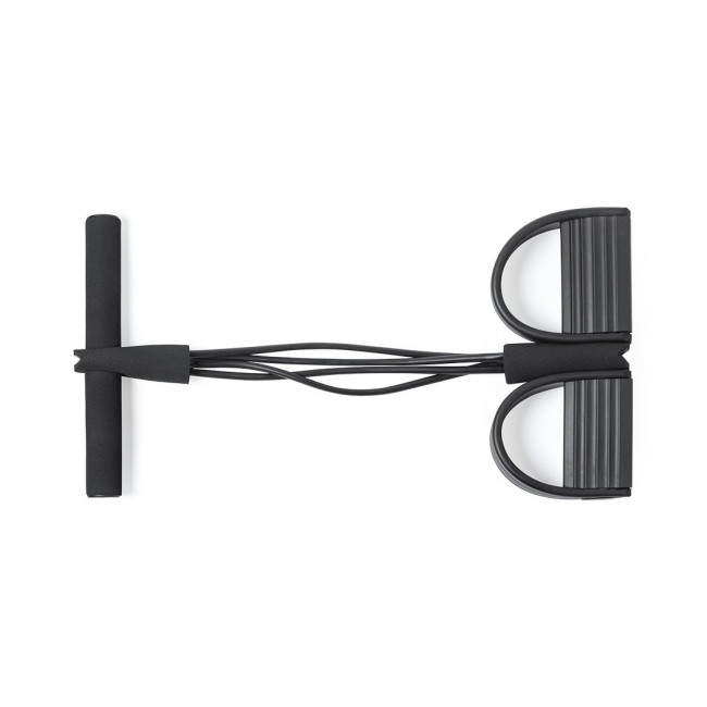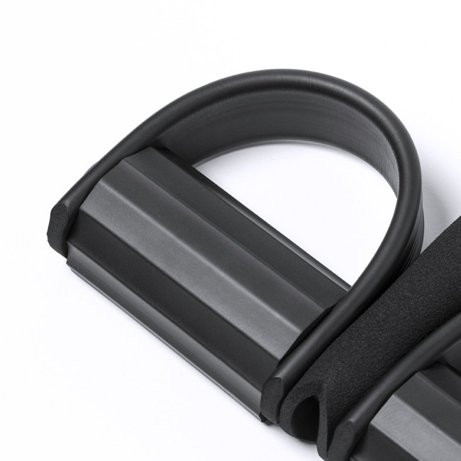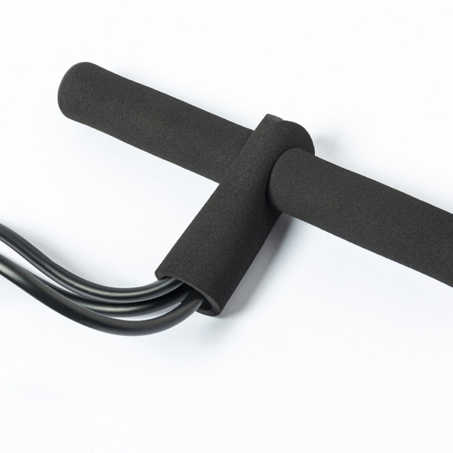 Corda di tensione per mantenersi in forma all'aperto o a casa, progettata per eseguire un'ampia varietà di esercizi. Realizzata in resistente combinazione di ABS ed EVA con maniglie ergonomiche imbottite in schiuma e supporti per i piedi rivestiti in EVA, con clip di sicurezza per le dita dei piedi. Forza media e con libretto di esercizi. Confezionata in una fodera di poliestere RPET abbinata, realizzata in plastica riciclata per incoraggiare il riutilizzo dei rifiuti plastici e contribuire alla sostenibilità del pianeta. Etichetta RPET distintiva sulla fodera.