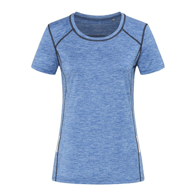 90% poliestere ACTIVE-DRY° (50% riciclato), 10% elastan. T-shirt sportiva da donna, tessuto funzionale eco-compatibile, prodotto con 4 bottiglie di plastica riciclate per ciascuna t-shirt, tessuto super soft ACTIVE-DRY°, effetto mélange, nastro riflettente (davanti e dietro) per un'eccellente visibilità, cuciture flatlock in contrasto cromatico, collo stretto dello stesso materiale, cuciture laterali, etichetta della taglia intessuta nel colletto, etichetta di manutenzione a strappo nella cucitura laterale, lavabile a 40°C.