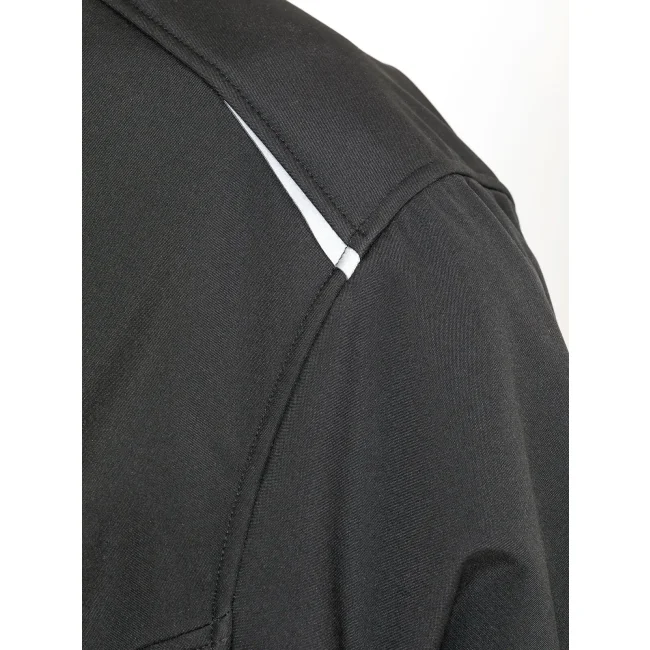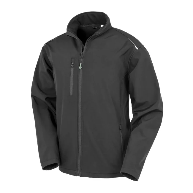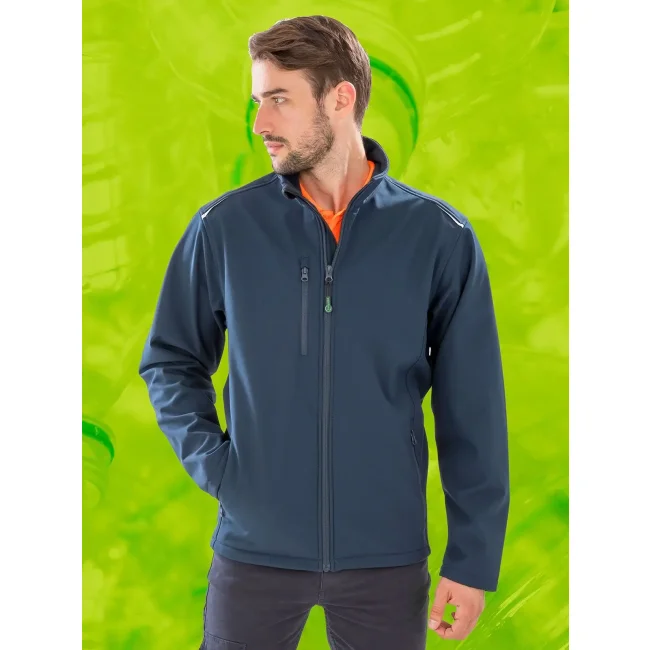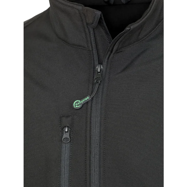 Tessuto esterno: 100% poliestere riciclato TOPGREEN Tessuto centrale: membrana TPU idrorepellente 8000mm, traspirante 1000g, antivento. Tessuto interno: 100% poliestere riciclato micropile. Giacca softshell 3 strati idrorepellente con zip YKK e protezione per il mento, dettagli riflettenti sulle spalle fronte e retro, cuciture decorative fronte e retro, tasche frontali con zip, colletto alto, PFOA-free.