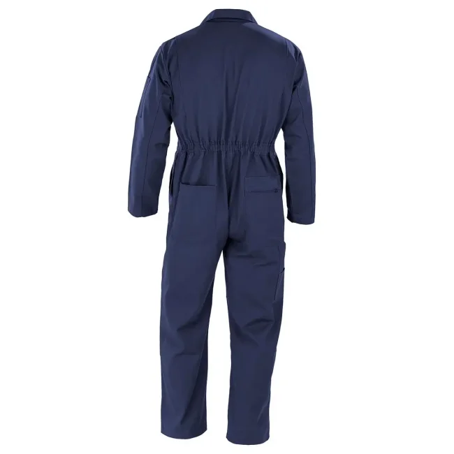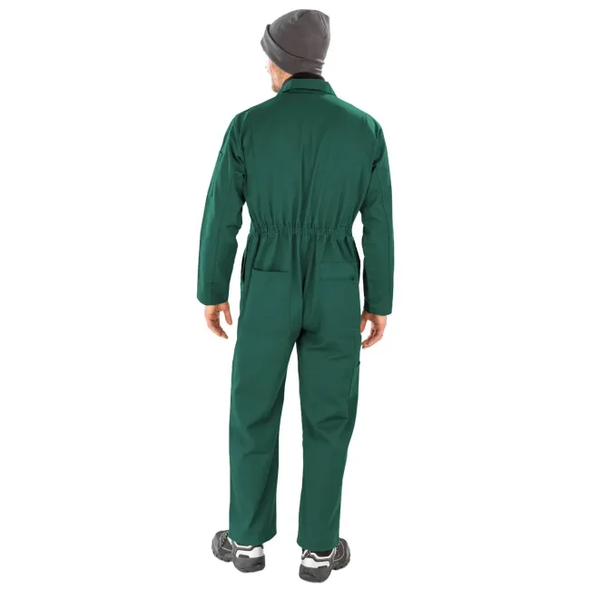 100% poliestere twill riciclato. 270 g/m². Salopette robusta e pratica, con numerose tasche e schiena elasticizzata, senza fodera. Zip bidirezionale YKK con patta di protezione, tasche laterali, tasche posteriori con zip. Cintura elasticizzata sul retro, polsini e caviglie aperti. Schiena con soffietto, colletto con bottone automatico. Taschino porta-penna sulla manica, tasca sul petto con zip, tasca per righello. Prodotta da bottiglie in 100% plastica riciclata PET post-consumo.