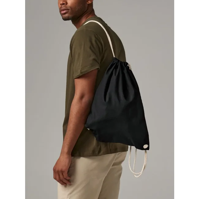 100% cotone riciclato. Sacca realizzata in 100% cotone riciclato GRS, corde in cotone riciclato, certificato da Control Union CU811033. Etichetta removibile.