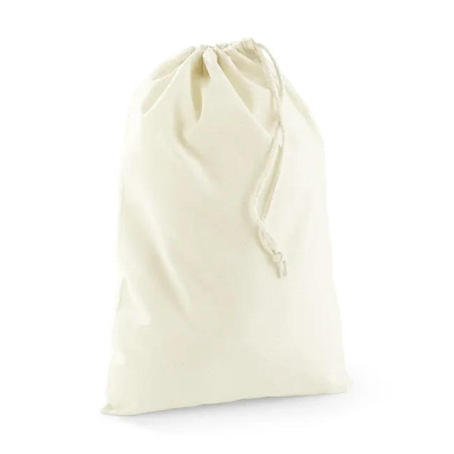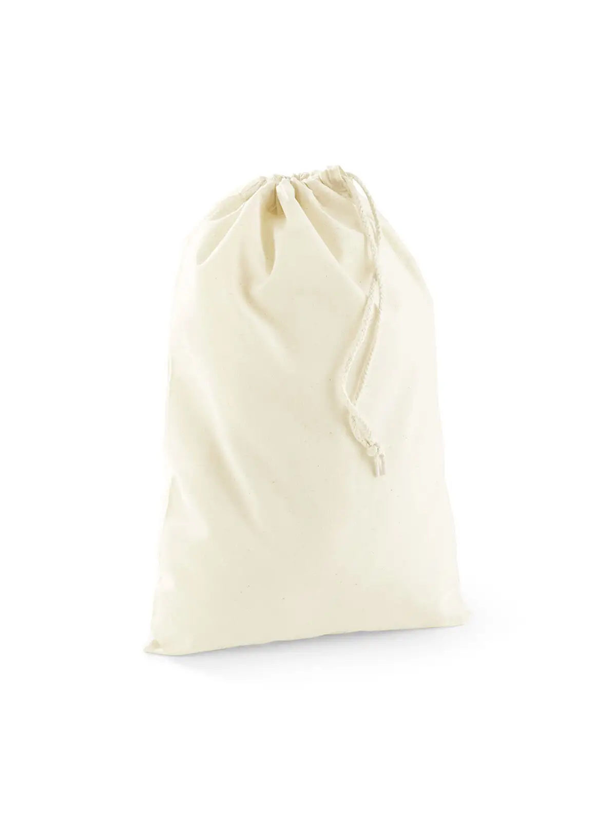 100% cotone riciclato. Sacchetto in cotone riciclato GRS, certificato da Control Union CU811033 con cordini in cotone riciclato. Etichetta removibile. Dimensioni: XXS: 10x15 cm, cap. 0,25 lt. - XS: 14x20 cm, cap. 1 lt. - S: 25x30 cm, cap. 3 lt. - M: 30x45 cm, cap. 8 lt. - L: 40x50 cm, cap. 14 lt. - XL: 49x75 cm, cap. 38 lt.