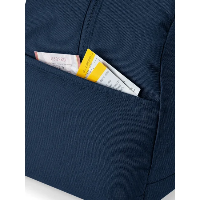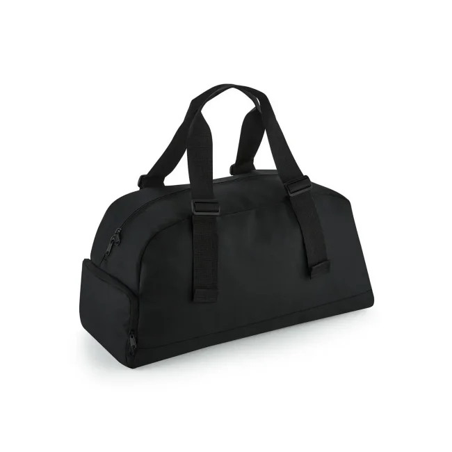 Recycled Essentials Holdall realizzato in poliestere 600D riciclato rPET, equivalente a circa 14 bottiglie post-consumo. Dotato di tasca interna con cerniera, compartimento per scarpe e tasca esterna aperta. Include manici a tracolla regolabili e etichetta removibile TearAway, certificato GRS.