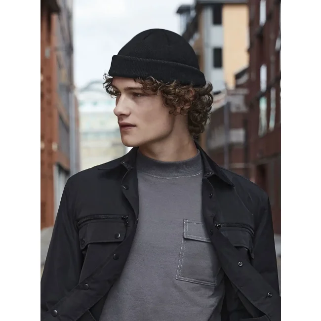 100% poliestere riciclato rPET. Cuffia a maglia doppia, corona bassa, risvolto doppio. Etichetta removibile TearAway per facilitare il rebranding.