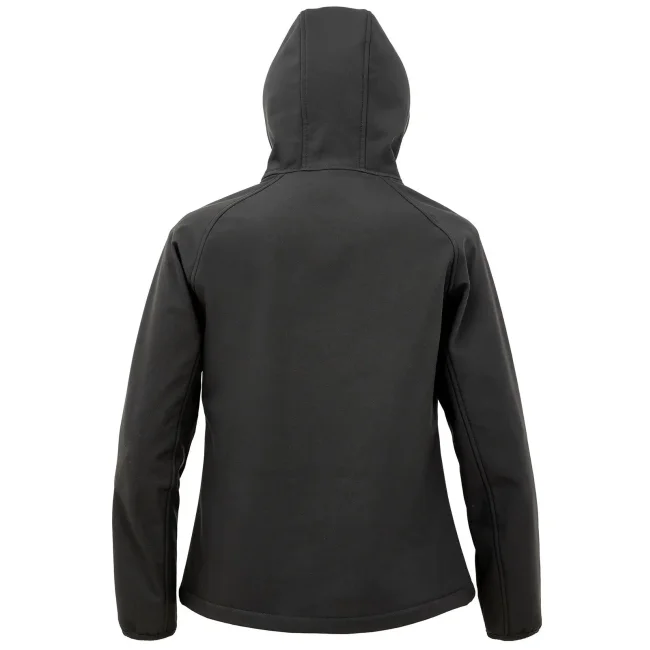 Tessuto esterno: 100% poliestere riciclato Tessuto centrale: membrana TPU idrorepellente 8000mm, traspirante 3000g, antivento. Tessuto interno: 100% poliestere riciclato micropile. Giacca softshell a 3 strati con zip YKK, polsini e vita elasticizzati, modello aderente, cappuccio regolabile con coulisse, tasche laterali con zip, tasche interne, carrè frontale decorativo. Etichetta strappabile.