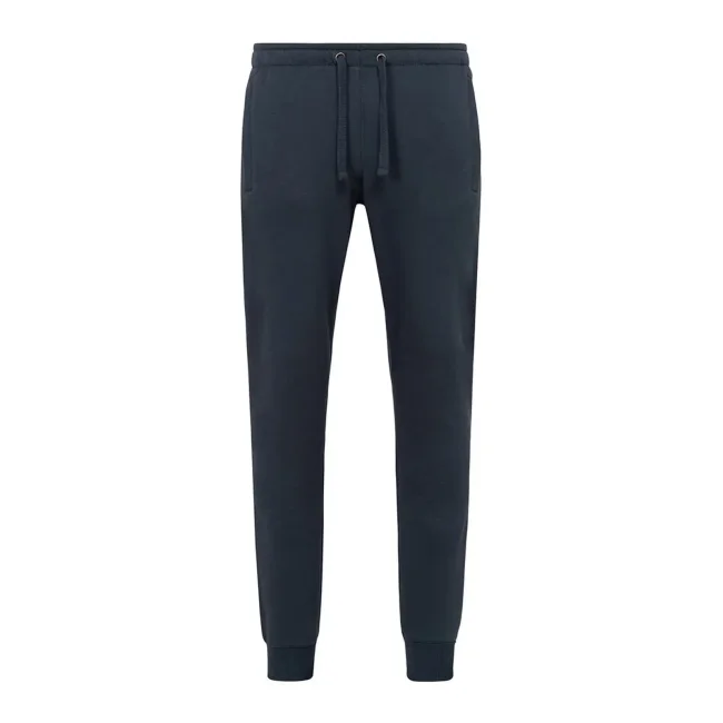 80% cotone, 20% poliestere riciclato. Pantaloni unisex felpati internamente, tessuto funzionale eco-compatibile, prodotto con 6 bottiglie di plastica riciclate per pantalone, disponibile felpa coordinata, garzati internamente, tasca sul retro a destra, tasche laterali con cerniera in metallo (senza nichel), bordo vita nello stesso tessuto del capo con cordino tono su tono, polsini in costina larga, etichetta della taglia intessuta nella cintura, etichetta di manutenzione a strappo nella cintura, lavabile a 40°C. Col. GYH: 70% cot, 30% pol. riciclato.