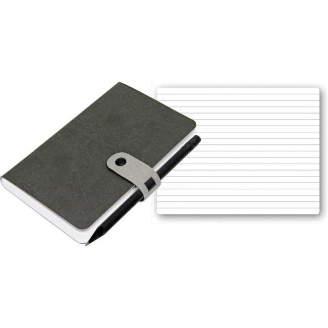 LOCKED blocco 224 pg. a righe, in vivella bicolore, con passante a contrasto e matita. Astuccio di confezione.