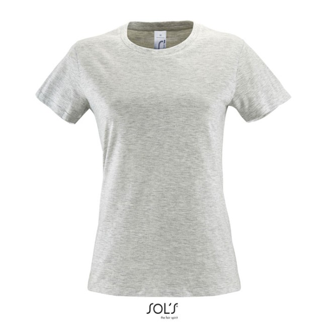 SOL'S REGENT WOMEN, T-SHIRT DA DONNA CON COLLO TONDO, 100% cotone semipettinato Ringspun Jersey 150, Collo nastrato, Collo a coste, Maniche corte, Taglio aderente, Tagliata e cucita, (1) Ash: 98% cotone / 2% viscosa, (2) Grey melange: 85% cotone / 15% viscosa. Per la corrispondenza delle taglie, fare riferimento alla tabella delle taglie nella sezione documentazione prodotto.