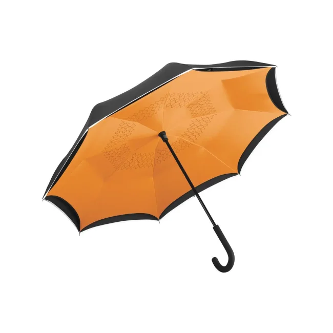 Copertura: 100% poliestere, manico: plastica, asta: acciaio. Ombrello con meccanismo di apertura inverso, bacchette in fibra di vetro flessibili, tessuto doppio traspirante, bordino catarifrangente, manico nero soft-touch. Diametro: 109 cm, lunghezza da chiuso: 78 cm, 8 pannelli.