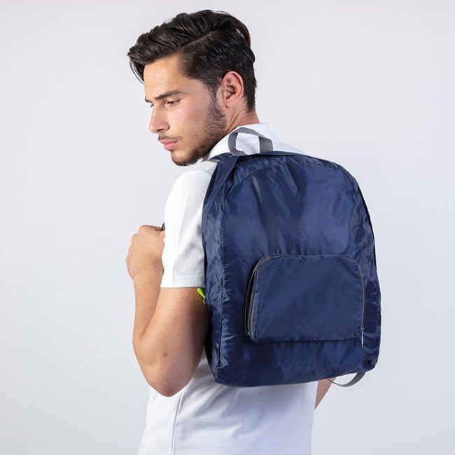 zaino in poliestere richiudibile in tasca anteriore con manico tasca anteriore 20x14cm tecnica di stampa consigliata: serigrafica - sublimatica (BI)