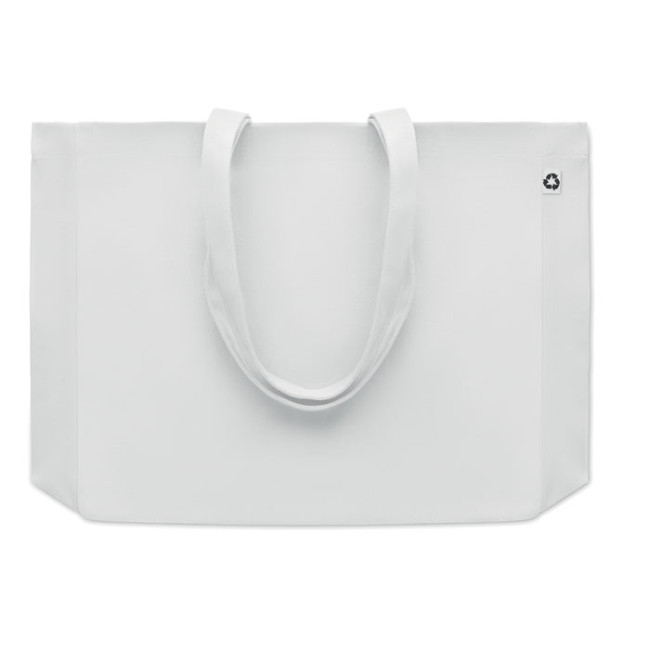 Borsa shopping in tela riciclata da 280 gr/m², disponibile in diverse colorazioni. Con manici lunghi per un trasporto comodo, questa tote bag ha una base a soffietto che la rende ideale per portare molti oggetti, sia in spiaggia che per la spesa. Composta al 50% di cotone e al 50% di cotone riciclato, è una scelta sostenibile.