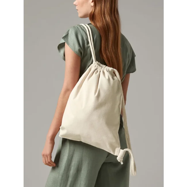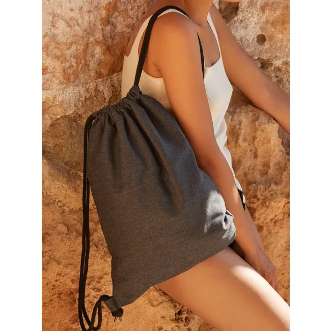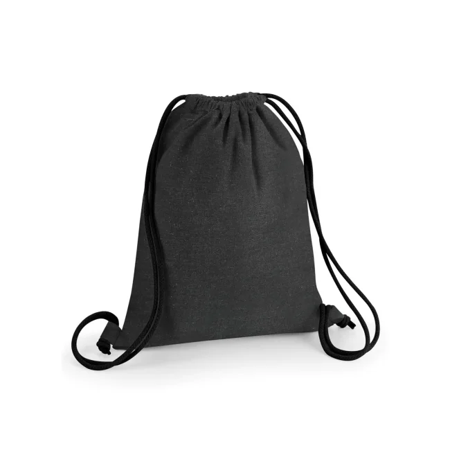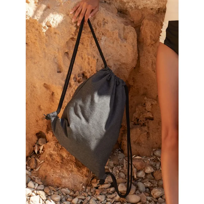 100% Misto Cotone e poliestere riciclato. Sacca realizzata con un mix di cotone riciclato pre-consumo e poliestere riciclato post-consumo. Poliestere riciclato in 100% rPET, equivalente a 2.5 bottiglie post-consumo. Corde in misto cotone/poliestere riciclati. Etichetta removibile.