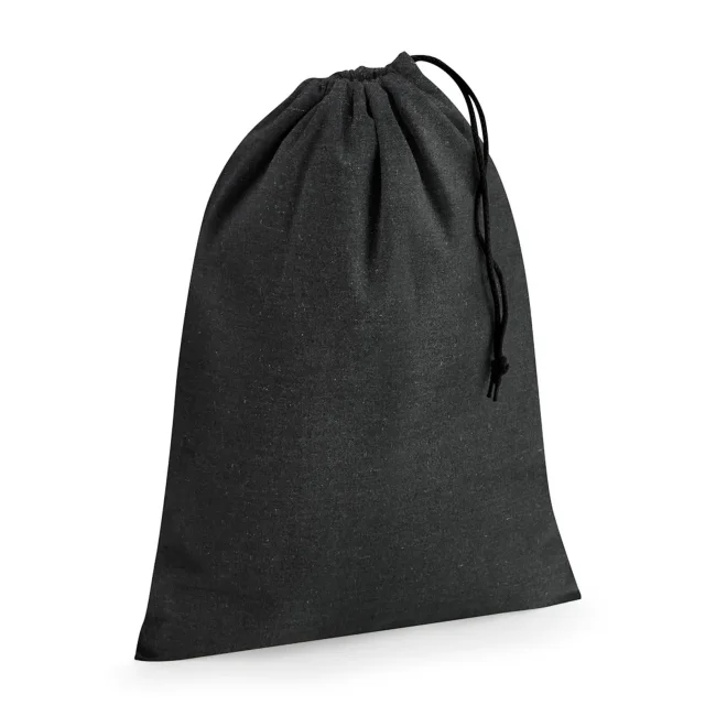 100% Misto cotone e poliestere riciclati. Sacchetto realizzato con un mix di cotone/poliestere riciclati pre-consumo. Corde in misto cotone/poliestere riciclato. Chiusura con cordino. Etichetta removibile. Dimensioni: S: 25x30 cm, cap. 3 lt. - M: 35x43 cm, cap. 9 lt. - L: 47x54 cm, cap. 17 lt. - XL: 50x68 cm, cap. 32 lt.