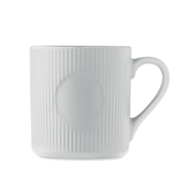 Tazza in ceramica a coste di colore opaco. Capacità: 340 ml.
