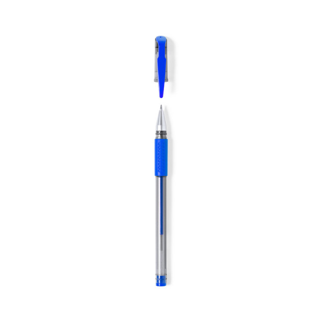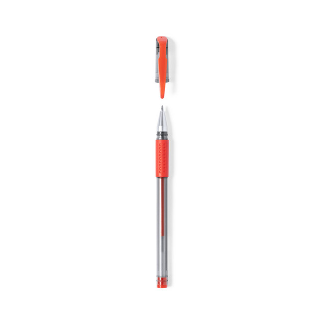 Biro a inchiostro gel dall'originale design trasparente, con impugnatura, cappuccio e dettagli coordinati. Disponibile in vari colori di scrittura, con inchiostro dello stesso colore della finitura della penna.