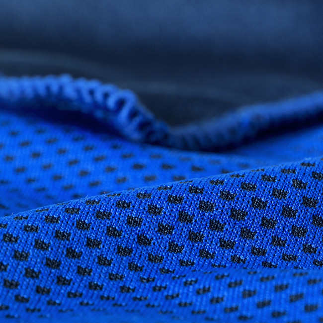 Asciugamano di 90x30cm in materiale refrigerante SoftCool Extreme con protezione UV50. Di 160g/m2 e presentato in astuccio individuale trasparente con maniglia moschettone integrata nel coperchio.