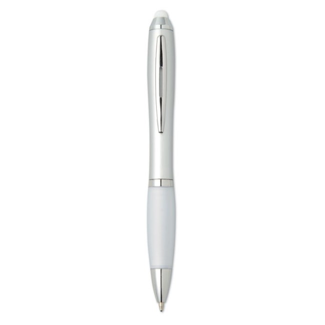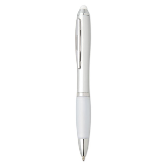 Penna a sfera in ABS con impugnatura morbida. Meccanismo twist. Refill blu. Punta touch screen.