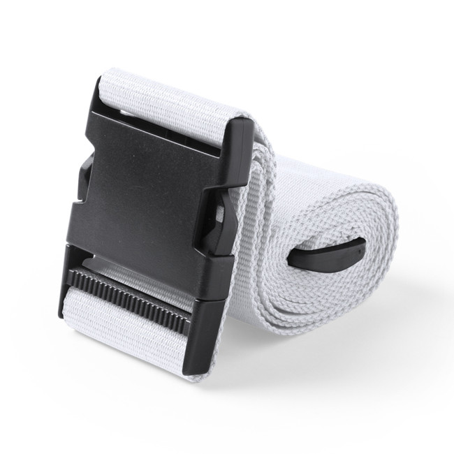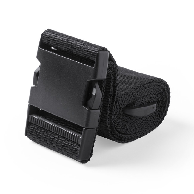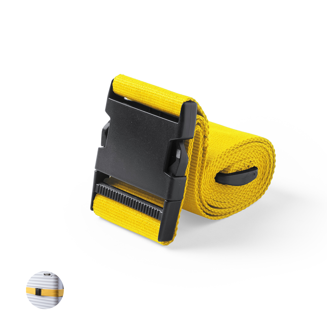 Cinghia per bagagli da 180 cm in poliestere resistente con finitura colorata. Con chiusura a scatto e accessorio di regolazione.