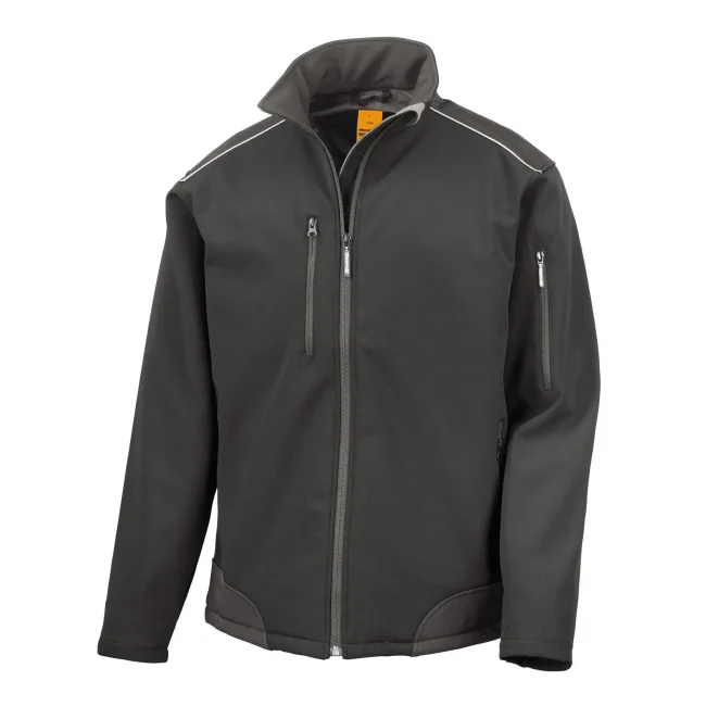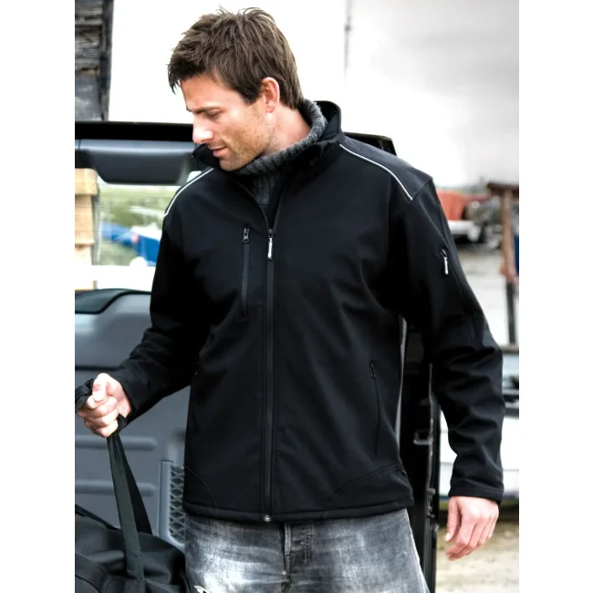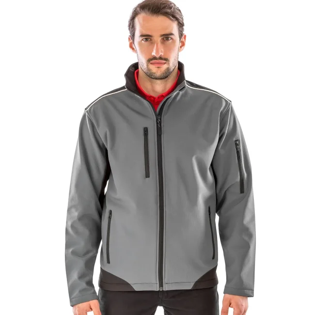93% poliestere, 7% elastane. Giacca in softshell a 3 strati, tessuto traspirante, impermeabile e antivento. Interno in micropile. Zip antivento e protezioni antivento posteriori. Una tasca sul petto con zip, due ampie tasche frontali con zip e una tasca sulla manica con zip.