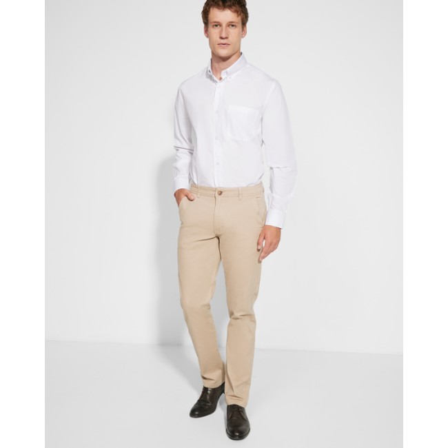 Pantaloni lunghi da uomo in tessuto resistente e confortevole.· Due tasche laterali oblique in stile chino.· Due tasche posteriori a filetto con bottone e cuciture decorative.· Pieghe posteriori.· Passanti per cintura.· Appositamente progettato per gli ambienti di lavoro e di ospitalità.