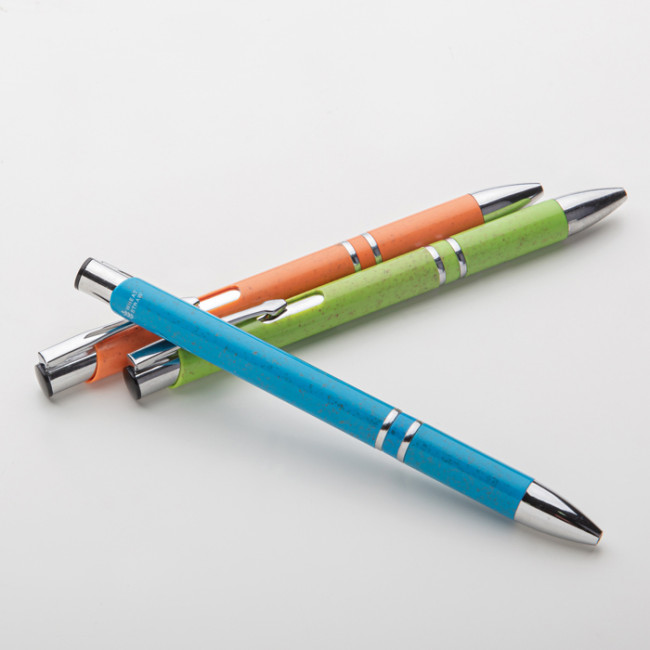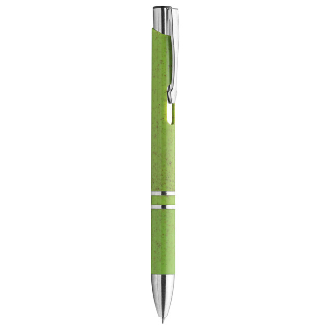 penna a sfera in plastica meccanismo a scatto fusto in fibre di paglia di frumento minuterie cromate refill nero