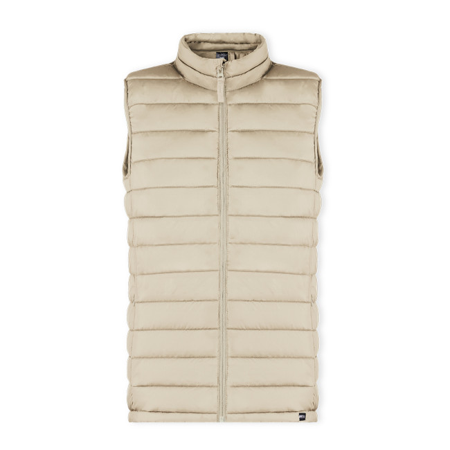 Gilet unisex in morbido e caldopoliestere 100% RPET, realizzato in plastica riciclata per favorire il riutilizzo dei rifiuti plastici e contribuire alla sostenibilità del pianeta. In materiale leggerissimo effetto piuma, impermeabile e antivento, con imbottitura interna. Collo con chiusura a cerniera cona con cursore e linguetta a strappo ampie tasche laterali con cerniera. Badge RPET su etichetta e disponibile in un'ampia gamma di colori. Taglie S, M, L, XL, XXL