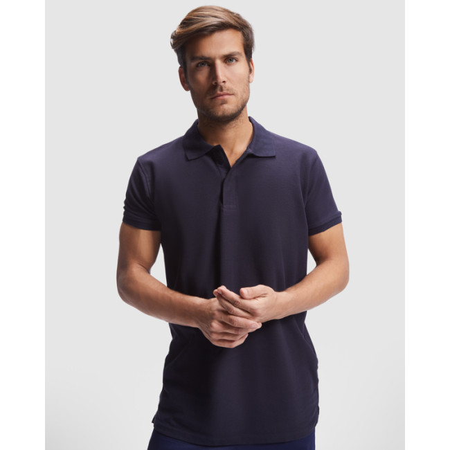 Polo manica corta. · Collo e bordo maniche a costine 1x1. · Patta di chiusura in velcro. · copri cuciture rinforzate nel collo. · Spacchetti laterali al fondo.