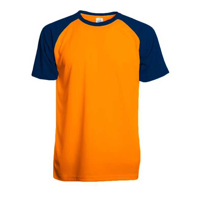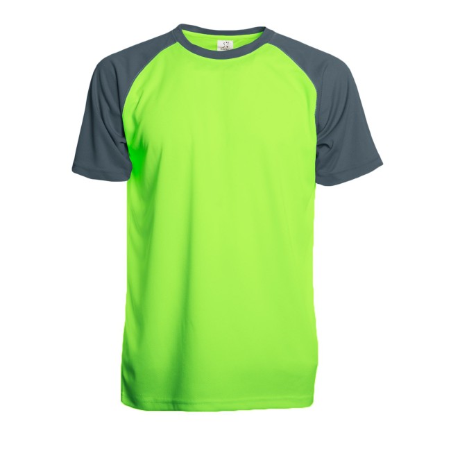 100% poliestere. T-shirt maniche corte raglan, girocollo di colore contrastante, cuciture flatlock per un maggiore comfort, struttura con cuciture laterali. Etichetta removibile.