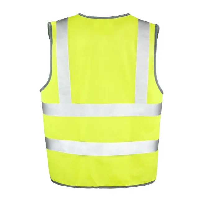100% poliestere. Gilet ad alta visibilità unisex, strisce di sicurezza verticali e orizzontali, vestibilità ampia che permette di indossarlo sopra ad altri indumenti, profili in poliestere grigio, strisce di sicurezza cucite (50 mm). Chiusura singola a strappo. EN ISO 20471:2013 Classe 2 GO/RT 3279 ISSUE 8:2013 Class 2 (Solo arancione) Conforme alla direttiva 89/686/EEC
