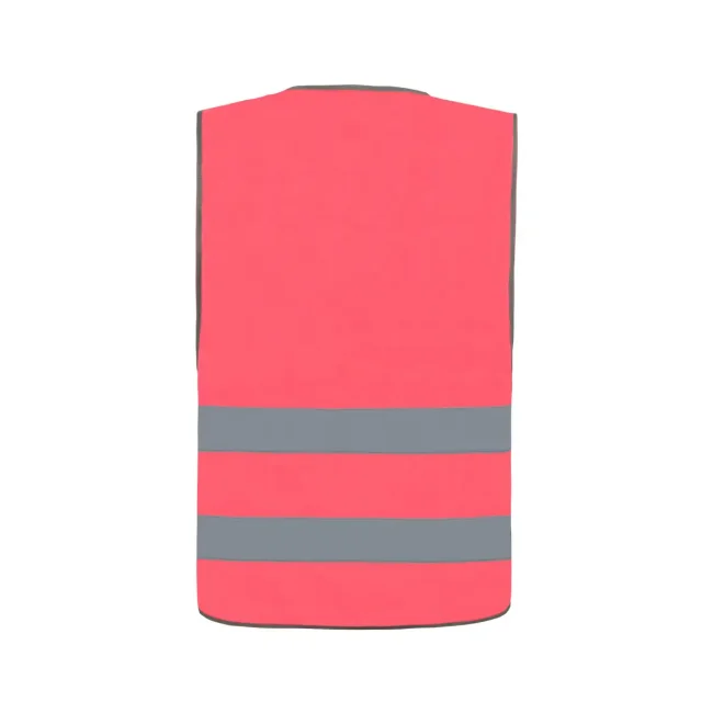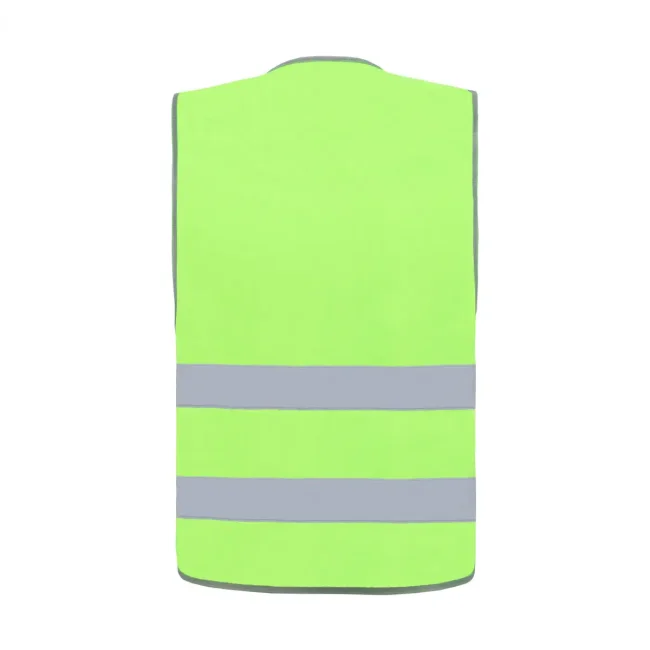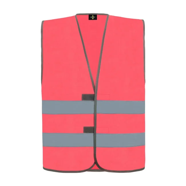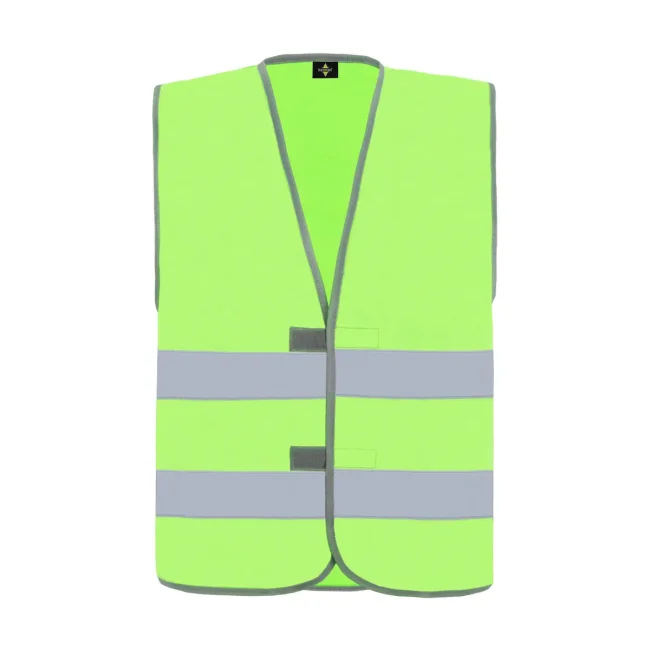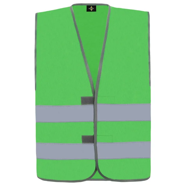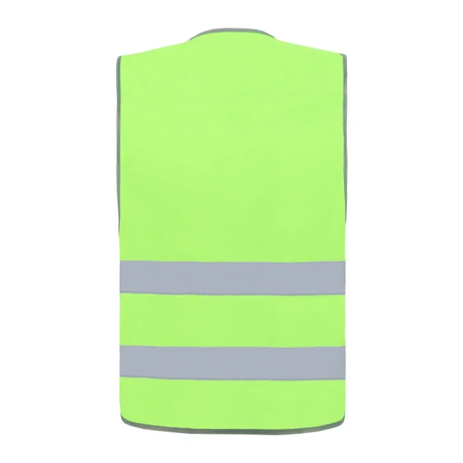 100% poliestere. Gilet di sicurezza "Passau", EN ISO 20471:2013/A1:2016, due strisce orizzontali riflettenti larghe 5 cm attorno al busto, misura regolabile con due chiusure in velcro. Il produttore garantisce le proprietà riflettenti secondo la norma EN per 25 cicli di lavaggio a 40 °C, l'EAN/codice a barre può essere scansionato nell'etichetta, confezionati singolarmente, etichetta strappabile.