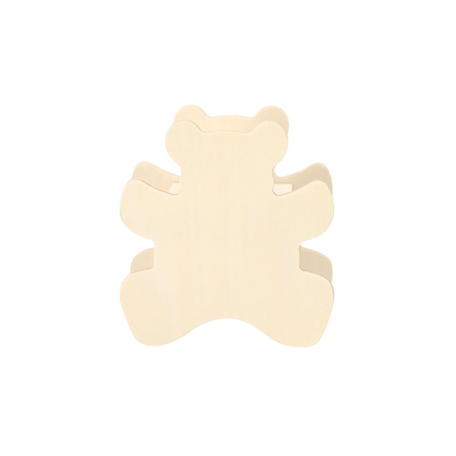 Salvadanaio realizzato in legno naturale, caratterizzato da un design di animali. Include cere colorate che permettono di personalizzare il design e una pratica apertura inferiore per accedere facilmente ai risparmi.