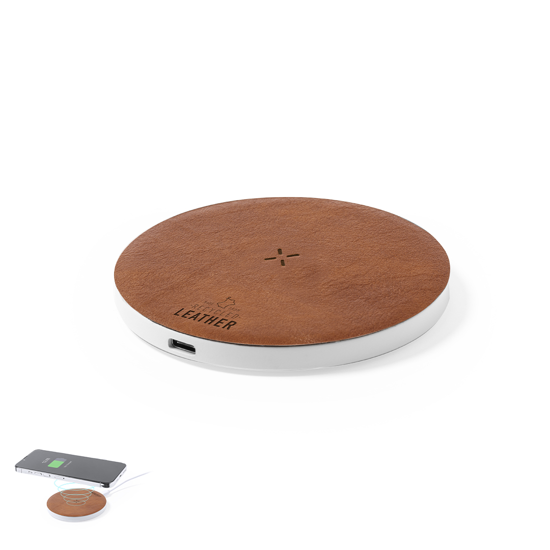 Caricatore wireless da 15W, realizzato con una combinazione di RABS e pelle riciclata. Compatibile con i dispositivi dotati di tecnologia di ricarica wireless Qi. Con base antiscivolo, include un cavo di ricarica di tipo C e un manuale di istruzioni in inglese e spagnolo. Confezionato in una scatola kraft individuale di design. Il materiale RABS o ABS riciclato e la pelle riciclata provengono dal riciclo di articoli giunti alla fine del loro ciclo di vita. I materiali riciclati utilizzati sono certificati RCS per garantire la loro origine riciclata. Prodotto secondo gli standard RoHS e in conformità ai seguenti requisiti di sicurezza: Sistema di protezione dal surriscaldamento. Sistema di protezione da sovraccarico. Sistema di bloccaggio per evitare cortocircuiti.