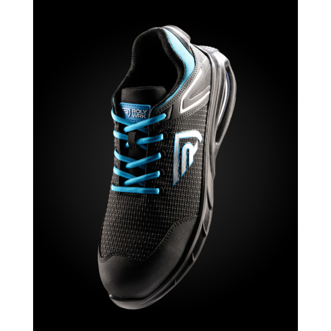 Scarpe da lavoro in stile sportivo, progettate con camera d'aria per un'ammortizzazione avanzata. Dotate di puntale in fibra di vetro da 200 joule e suola in poliuretano a doppia densità. Presentano rinforzi sulla punta e sul tallone, con chiusura a lacci. Realizzate in tessuto ad alta tenacità, offrono grande libertà di movimento e comfort.