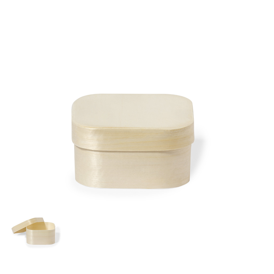 Scatola di presentazione quadrata in legno naturale con coperchio coordinato