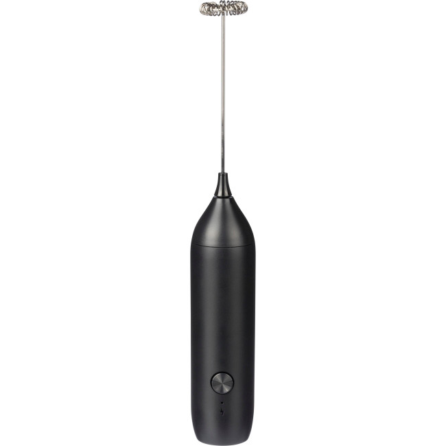Schiumatore elettrico ABS con utensile in acciaio inox, batteria da 500 mAh e cavo di ricarica Type-C (ricaricabile). Funziona a una velocità di rotazione di 10.000 giri/min, adatto per montare latte o proteine. Confezionato singolarmente in una scatola di cartone avana.