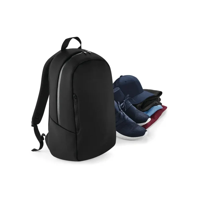 Zaino Scuba realizzato in poliestere e elastan, progettato per contenere laptop fino a 15.6". Dotato di tasca esterna con cerniera, tasca interna e pannello posteriore imbottito. Le dimensioni sono 31 x 50 x 16 cm con una capacità di 20 litri e un'area di stampa di 34 x 16 cm, ideale per branding aziendale.