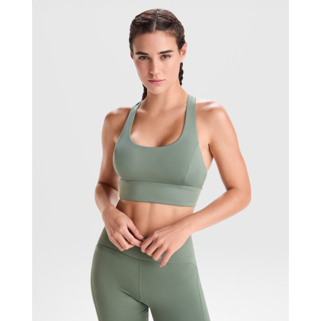 Top sportivo traspirante ed elastico. Senza cuciture. Scollo rotondo e spalline incrociate sul retro per un design elegante.