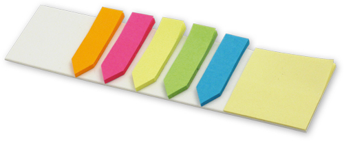 Segnalibro con memo colorati e foglietti adesivi. Confezione in polybag.
