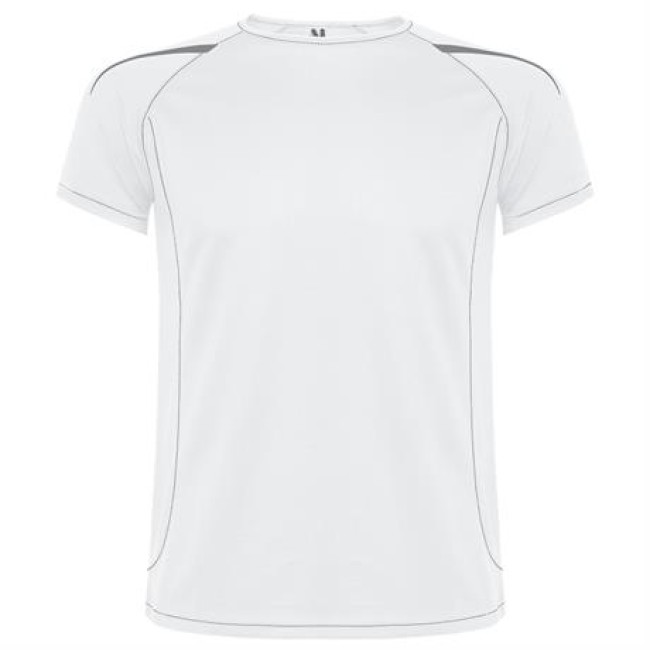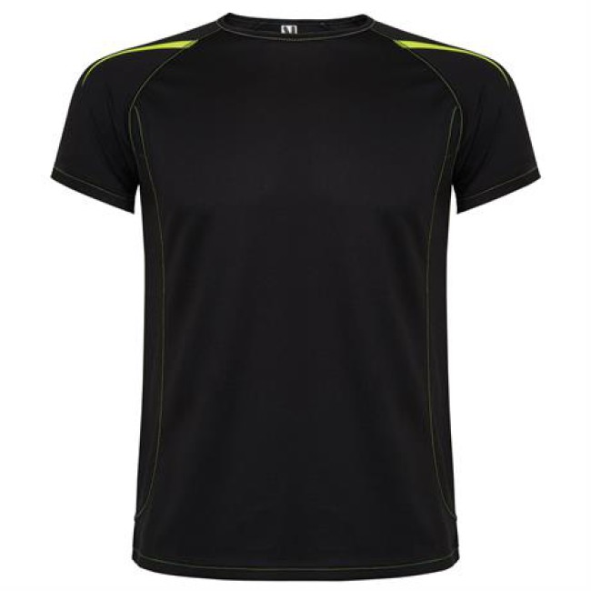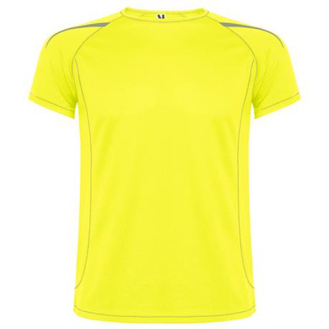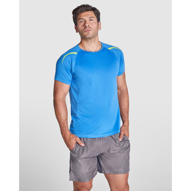T-shirt tecnica con maniche raglan traspiranti. Tessuto di facile asciugatura. Cuciture a contrasto su maniche, orlo, colletto e fianchi. Dettagli riflettenti, tranne che nei colori nero e royal, dove il dettaglio è in contrasto in colore giallo, non riflettente.