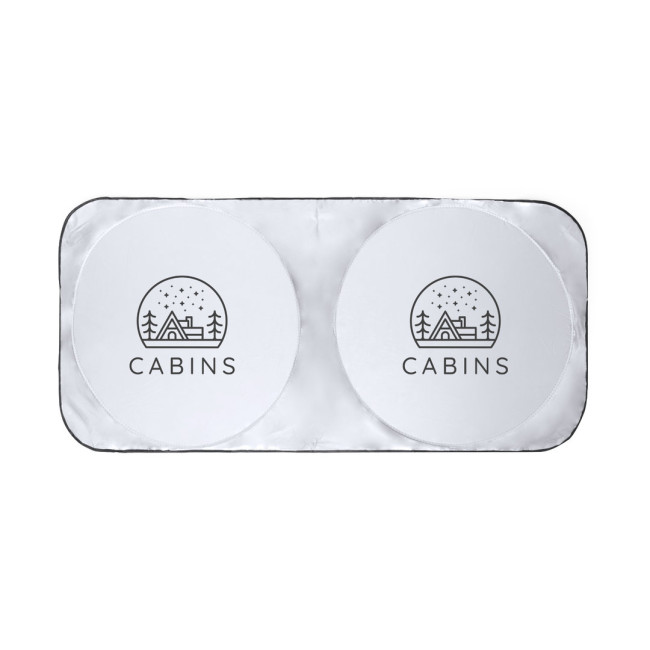 Originale parasole pieghevole in robusto poliestere argentato. Leggero, 150 x 70 cm, adatto per auto e furgoni. Bordi rinforzati, con sistema di piegatura facile e custodia singola abbinata. Inviato steso per facilitare la stampa, con custodia a parte.