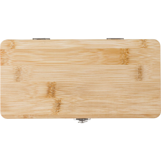 Set di utensili in acciaio al carbonio da 27 pezzi. Include: tre cacciaviti, dieci bit in un supporto tra cui Phillips, a taglio e Torx, un connettore, un adattatore, quattro prese, un taglierino ed un'impugnatura.