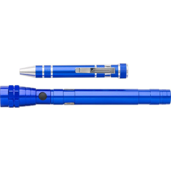 Set d'emegenza, composto da torcia in alluminio telescopica con tre luci LED, flessibile, kit cacciaviti con diverse punte intercambiabili, confezione regalo, batterie incluse