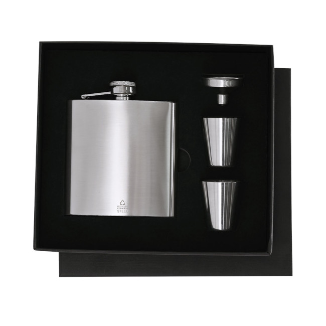 Set flacone in acciaio inox riciclato con bicchieri e imbuto dosatore
