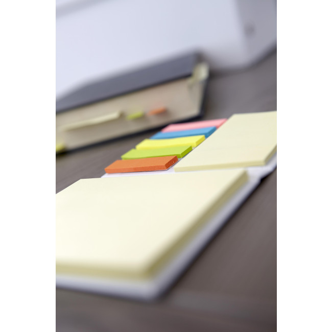 Set memo, composto da memo stick in vari colori, foglietti adesivi in due formati