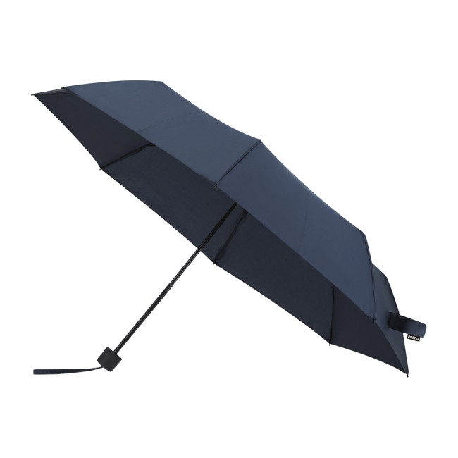 Set ombrello e borsa in RPET 600D, progettato per la praticità nei giorni di pioggia. Ombrello pieghevole con diametro di 100 cm, manico in ABS e sistema antivento. La borsa include una tasca laterale e una cerniera per riporre l'ombrello, mantenendo asciutto il contenuto. Etichetta RPET inclusa per evidenziare l'uso di plastica riciclata.