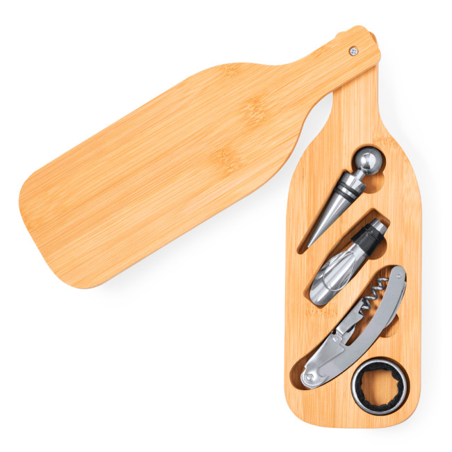 Set da vino in bambù con accessori in acciaio inox e custodia