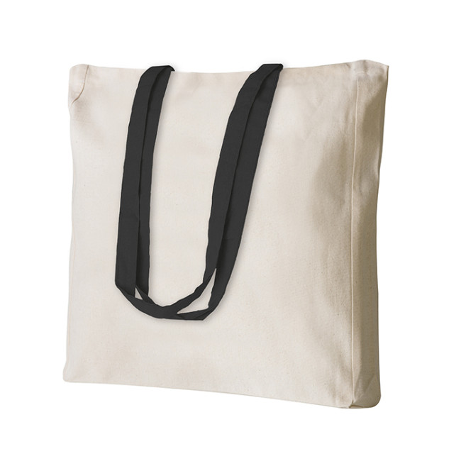 borsa shopping con soffietto manici lunghi colorati rifiniture cucite tecnica di stampa consigliata: serigrafica - transfer - digitale 220 GR