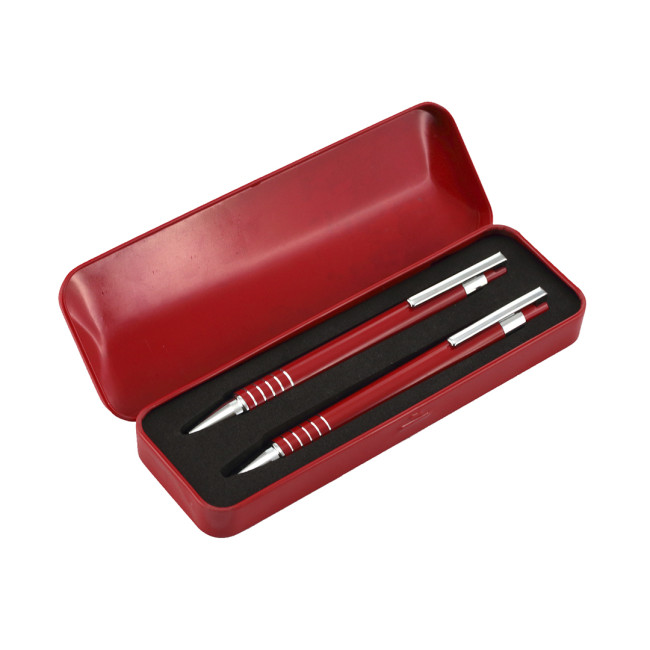 Set composta da biro con meccanismo a pressione e porta mine con design originale bicolore. Con fusto in metallo liscio dai colori vivaci e finiture argentate. Impugnatura ad anello e confezionate in un robusto astuccio individuale in metallo con morbida schiuma fustellata. Biro con cartuccia Jumbo e inchiostro blu e porta mine con mina da 0,7 mm incluse.