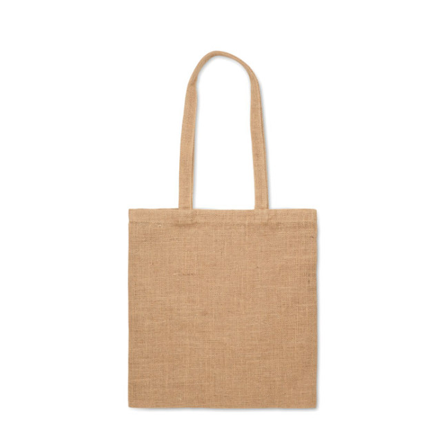 La shopper Zolang è realizzata in iuta, con manici lunghi per un comodo trasporto. Questa borsa è resistente e pratica, perfetta per il trasporto di oggetti e può essere personalizzata con logo.